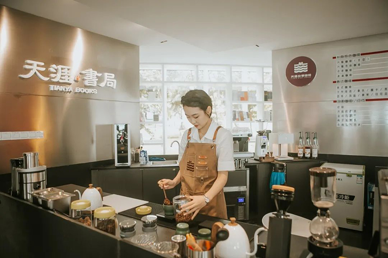 天涯小故事喝咔啡座落天涯书局1楼,3个月宝宝们来这些,既不错品尝一下喝咔啡,还不错读英文书籍、小米6拍照签到、寻址社交软件、遛娃、买文创产品……
